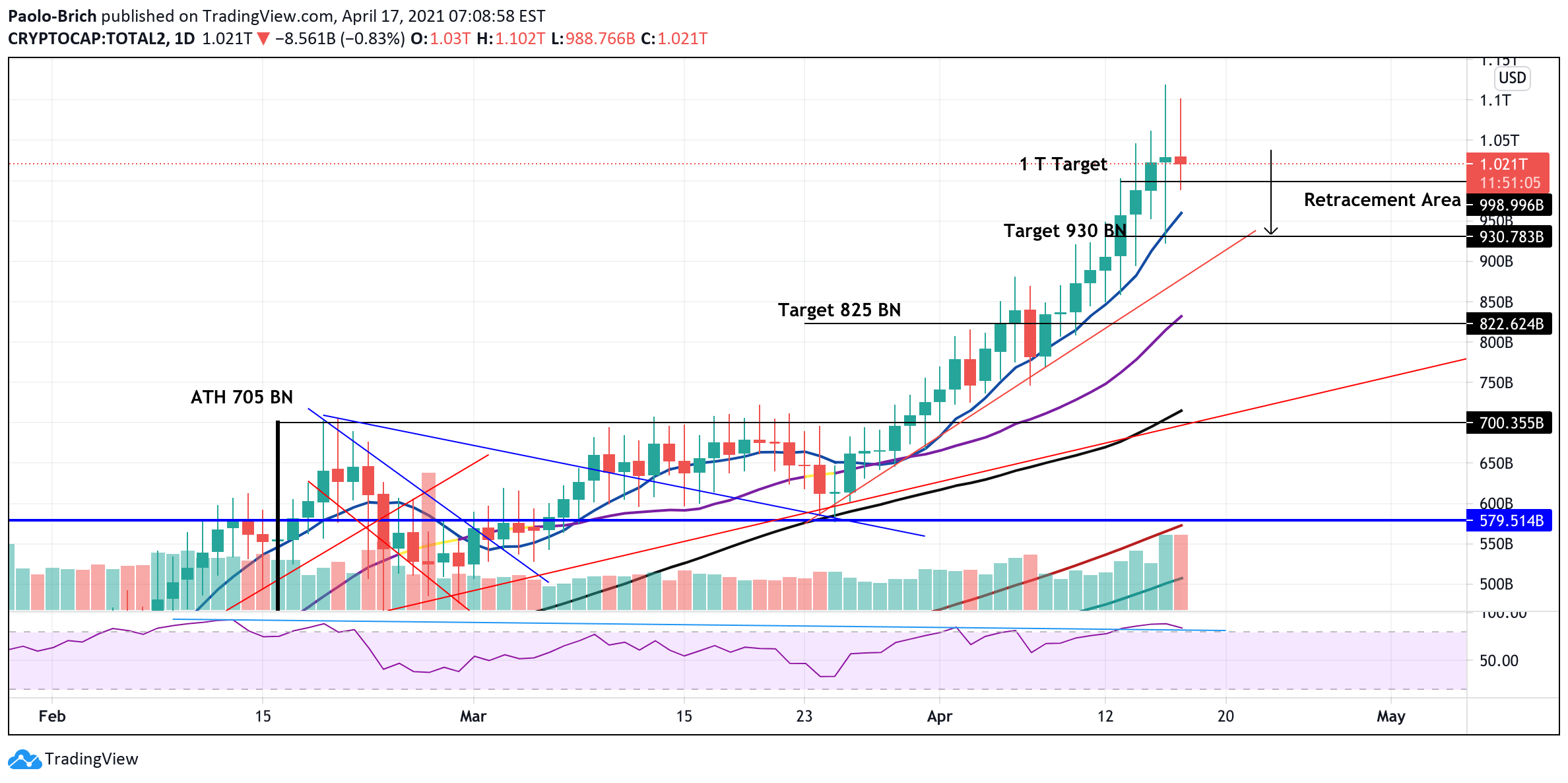 Btc Market Cap Chart Tradingview / Btc D Daily For Cryptocap Btc D By Cryptocolugo Tradingview - The charts below show total market capitalization of bitcoin, ethereum, litecoin, xrp and other crypto assets in usd.. Ten years from now, we'll be amazed at how fb once rivaled btc which had grown 100x while the former's caps shrunk by 40%. The price of solana (sol) is 196.5 , market capitalization is 51465272938. We'll look at dominance for different cryptos and the total market caps. This is like market cap in traditional markets i.e. . The charts below show total market capitalization of bitcoin, ethereum, litecoin, xrp and other crypto assets in usd.